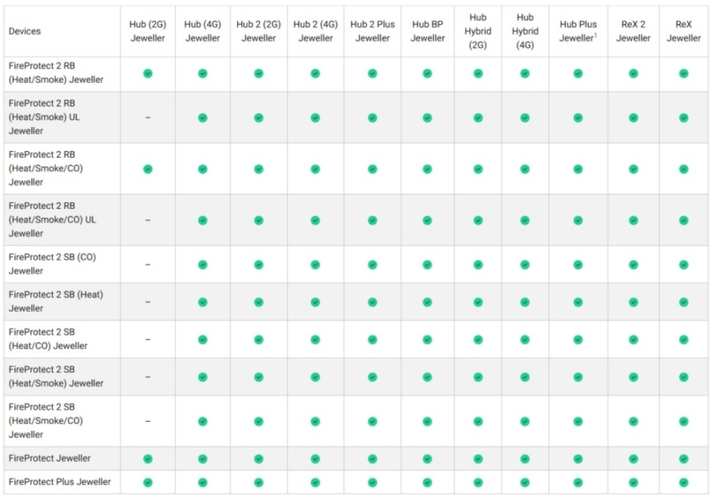 | Gama | Jeweller (wireless) |