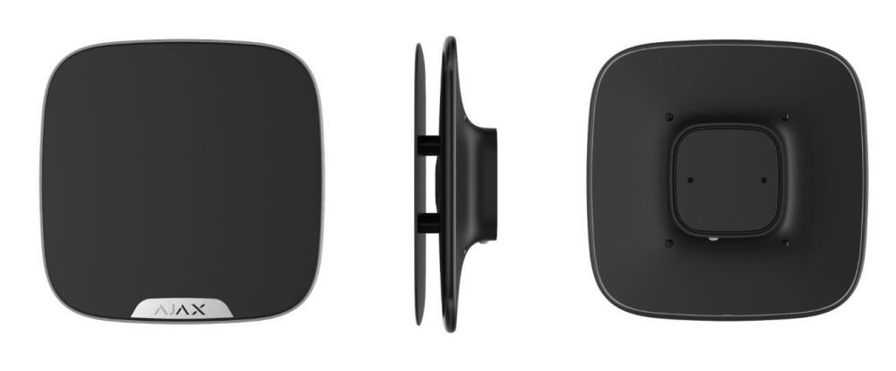 Sirena wireless de exterior neagra cu posibilitate montare carcasa personalizabila, notificari acustice (85-113 dB la distanta de 1 m) si vizuale (LED), durata alarma reglabila 3-180 secunde, indicator stare armat/dezarmat, distanta semnal radio max. 1500 m, alimentare cu 4 baterii CR123A incluse, 3 V, IP54, dimensiuni 200 x 200 x 55 mm, greutate 571g
