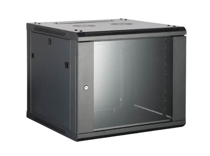 Rack 19 inch, 4U, montare pe perete, capacitate incarcare statica 40kg, dimensiuni 600 * 450 * 281 mm, greutate neta 14.5 kg, material SPCC, usa in partea din fata - 4 mm sticla, 1 mm SPCC, deschidere usa in procent de 78%