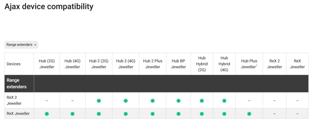 | Gama | Jeweller (wireless) |