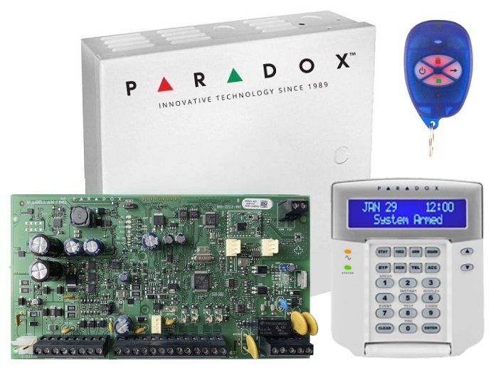 Centrala Magellan MG5050+ si Cutie metalica AWO 152 cu transformator + tastatura cablata K32LCD cu 32 zone + telecomanda cu 4 butoane REM1. MG5050+: emitator-receptor radio, 32 zone (oricare dintre acestea poate fi radio), 32 utilizatori si 32 telecomenzi, 2 partitii, 5 intrari de zona pe placa (10 cu ATZ), 4 iesiri PGM pe placa, activate pozitiv sau negativ (doar PGM4), BUS 4 fire (conecteaza pana la 15 tastaturi), memorie 256 evenimente, 433 MHz, 2 iesiri seriale master/slave