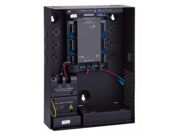 Centrala de control acces (cu port RS-485) pentru 2 usi bidirectionale sau 4 usi unidirectionale, 4 porturi pentru cititoare (6 fire), 4 intrari supervizate, 4 iesiri cu releu programabil, extensibila cu 1 modul MD-D04B (4 cititoare + 4 iesiri, 4 intrari) sau MD-IO84B (8 intrari EOL supervizate, 4 iesiri), capacitate 30.000 credentiale active (card si PIN), memorie 20.000 evenimente, alimentare 12VDC, iesire difuzor (audio), carcasa metalica ME-1015 inclusa