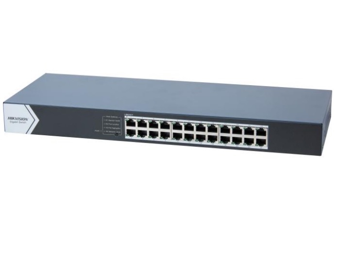 Switch unmanaged cu 24 porturi 10/100/1000 Mbps RJ45, montare in rack (echipat cu urechiuse de montare), plug-and-play, carcasa metalica, design fan-free, alimentare 100-240 VAC, 50/60 Hz, mx. 0.7 A, protectie la descarcari electrice pana la 6kV